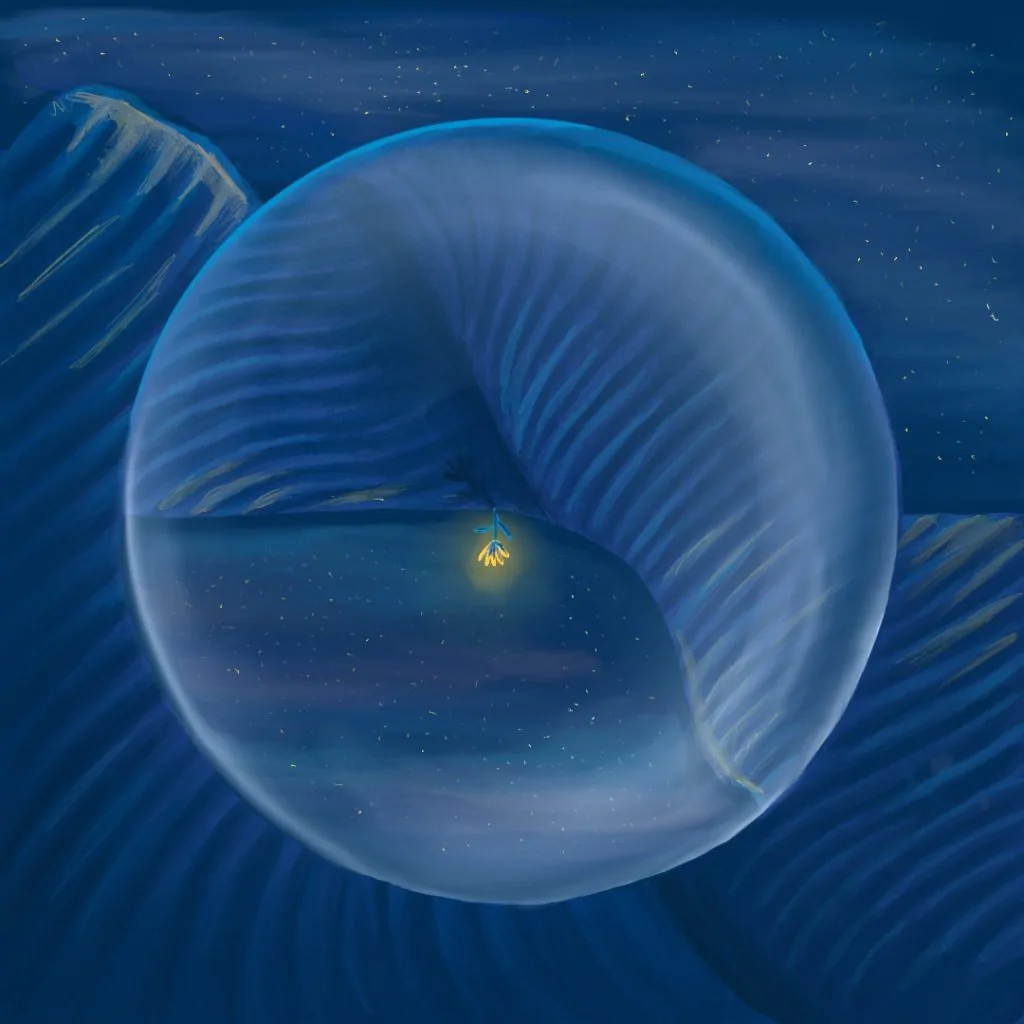 The flower symbolizes strength and the ability to flourish. The landscape is inspired by desert dunes, and the flower represents the ability to stand in the middle of nowhere and grow there.