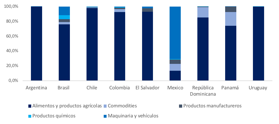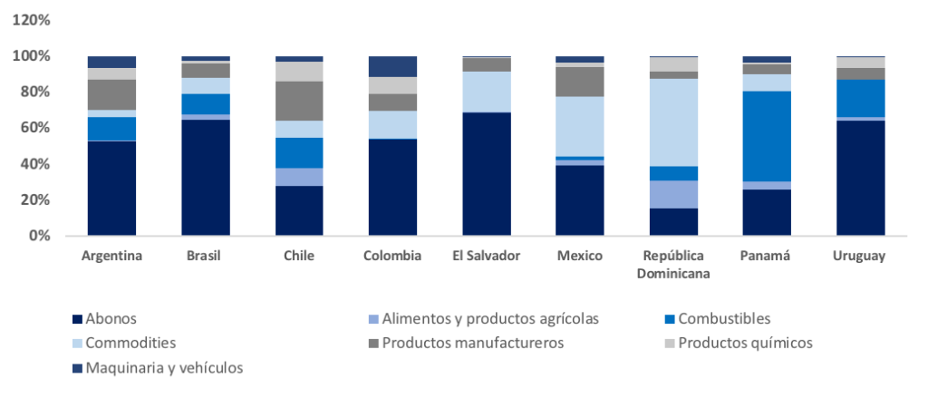 - Fertilizers are the main import product for countries in the region, where for countries such as Argentina, Brazil, Colombia, El Salvador and Uruguay they represent more than 50% of the total.